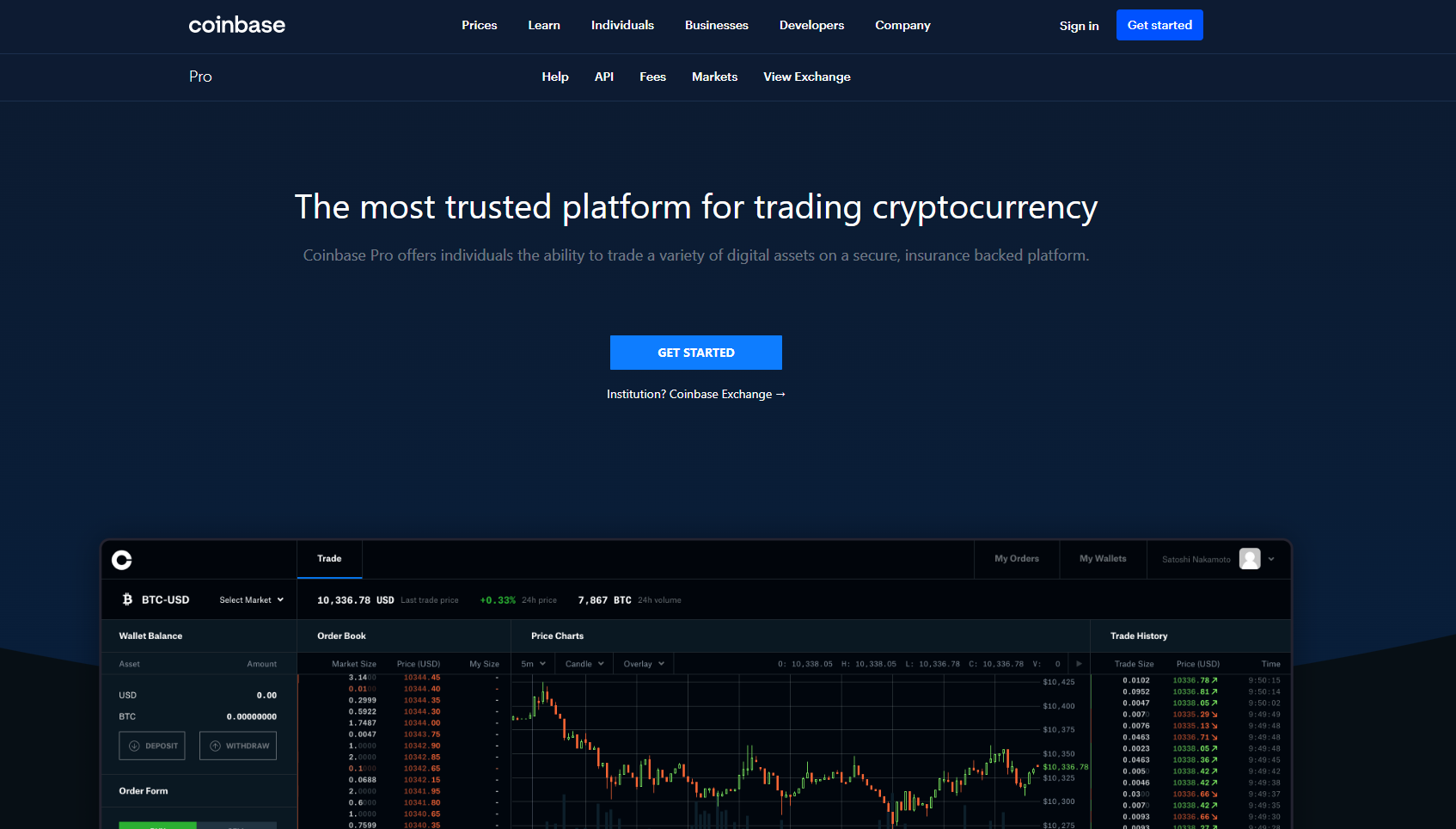- Coinbase Pro homepage